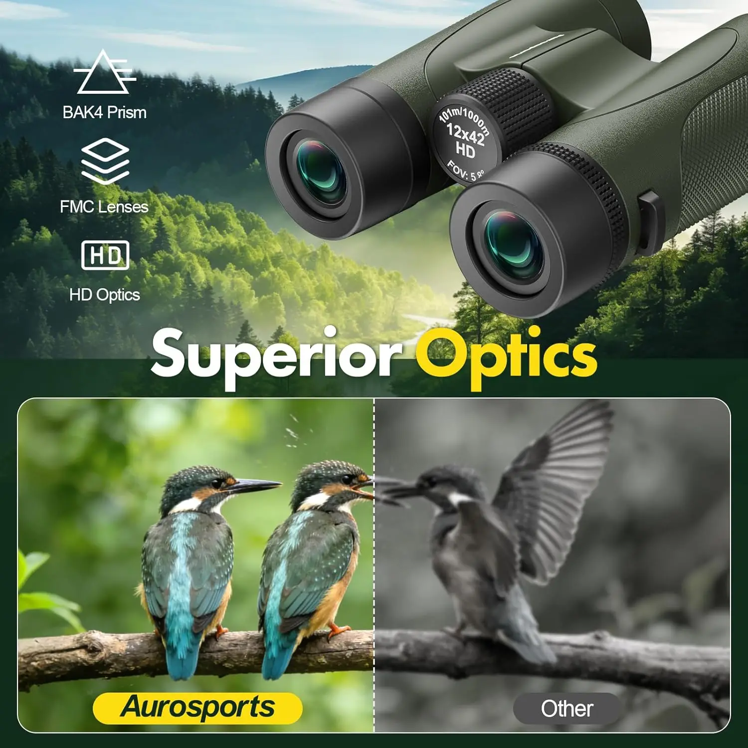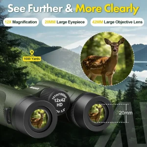 High-Powered 12×42 Binoculars for Adults, Waterproof HD with BAK4 Prism for Bird Watching and Hunting