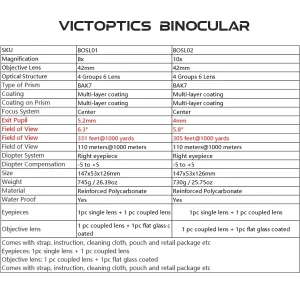 Victoptics 8X42 10X42 Binocular Professional Multi Coated Coated Prism Lens Telescope Camping Equipment for Hunting